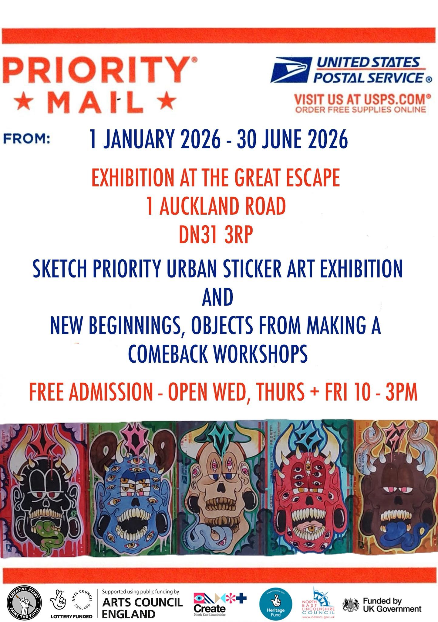 The Sketch Priority Urban Sticker Art Exhibition is collated by local street artist 'Stake' and shows off an impressive collection of hand-drawn stickers sent in by the worldwide sticker art community.